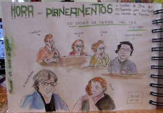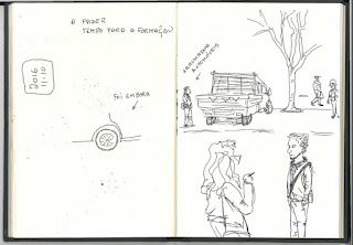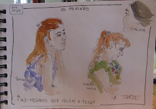 entretanto aproveitei para desenhar duas criaturas nuns sofás lindos do centro comercial. Desenhei as cabeças/caras e depois atirei com circulos e ovais para desenhar os corpos sem me preocupar com detalhes nenhuns
